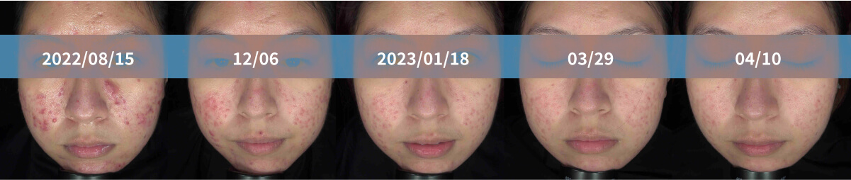 2023-05-18 In 案例分享 案例 2 沒有治不好的青春痘 只有不知道何去何從的患者 —— 林昱廷醫師 治療期間: 2022/12/06~2023/04/10 治療項目: 口服A酸 醫療級清痘+果酸換膚 1 次 染料雷射 3 次 2022/08/15 2023/04/10